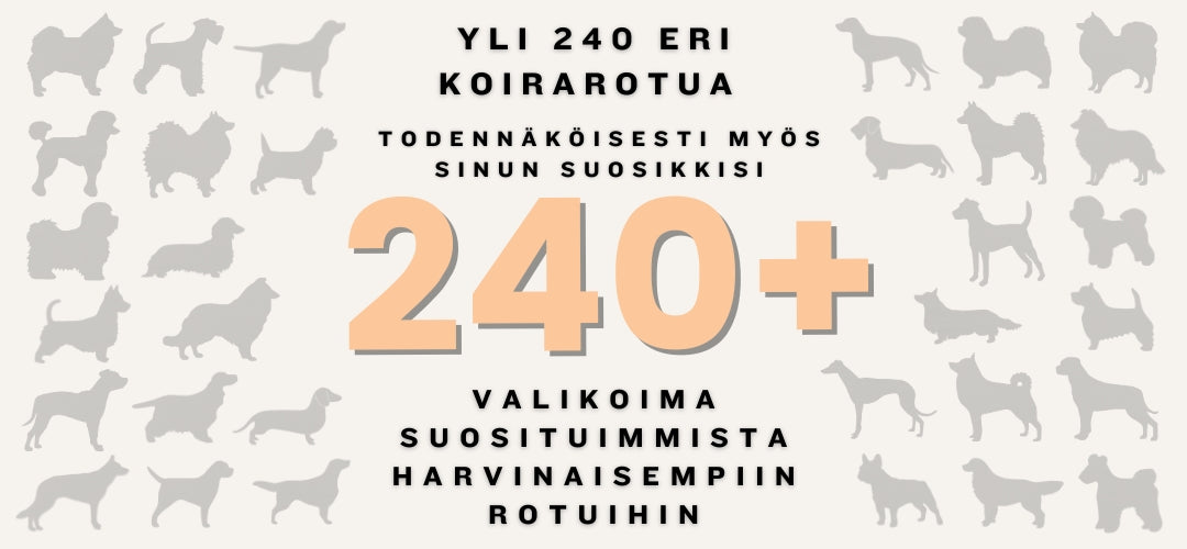 Vaikka valikoimassamme onkin tuotteita jo useista eri koiraroduista, niin voi jokin koirarotu toki vielä puuttua, mutta eipä huolta!