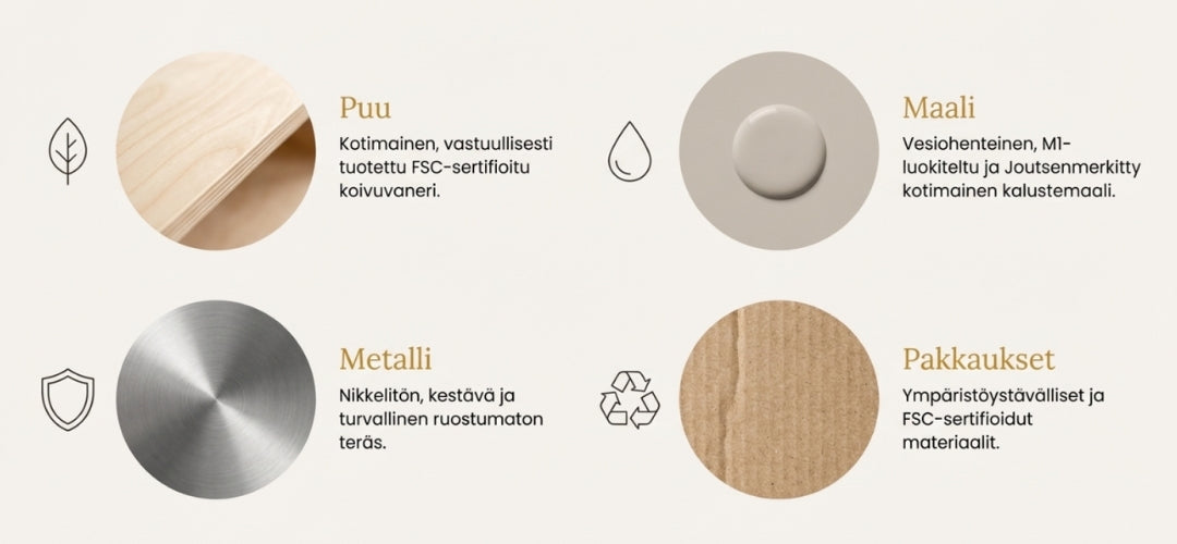 Kaikki tuotteemme on valmistettu kotimaisesta koivuvanerista.