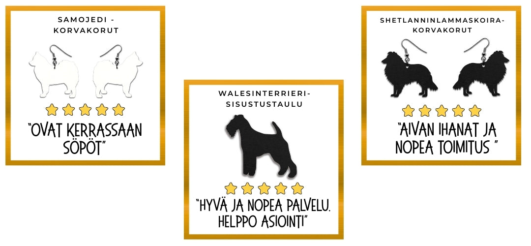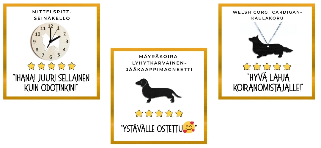 Sehvi.fi on kotimainen koira-aiheisten korujen ja sisustustuotteiden erikoiskauppa, jonka valikoimasta löydät tuotteita jo yli 240 eri koirarodusta. 🐾