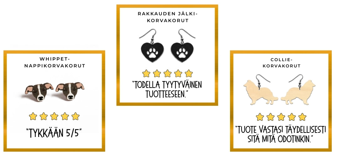 Laajasta valikoimastamme löydät koira-aiheisten korvakorujen ja kaulakorujen lisäksi myös kivat jääkaappimagneetit ja tyylikkäät sisustustaulut!